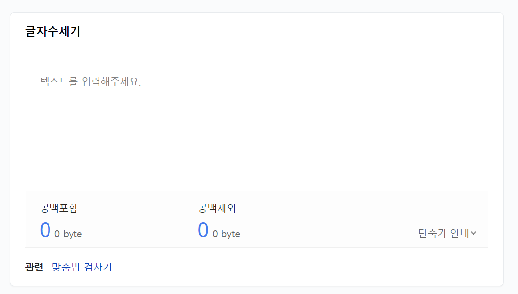 '글자수 세기'라고 네이버에 검색만 하면 바로 해당 기능을 찾아서 사용할 수 있습니다.