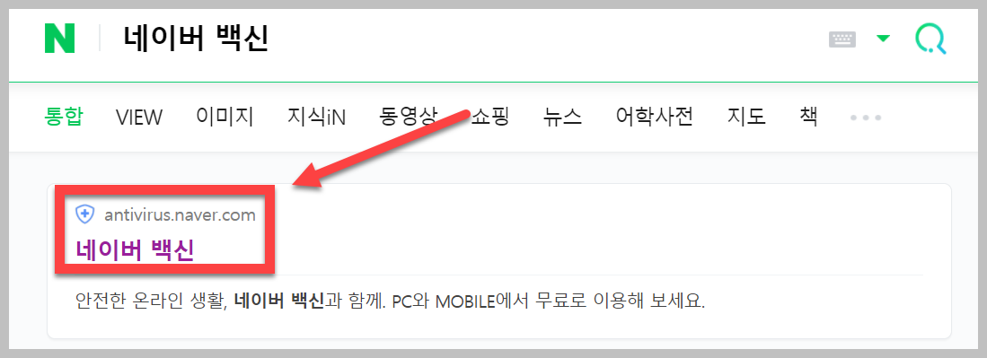 네이버 홈페이지에서 '네이버 백신'을 검색하여 나오는 첫 번째 결과를 클릭하시면 됩니다.