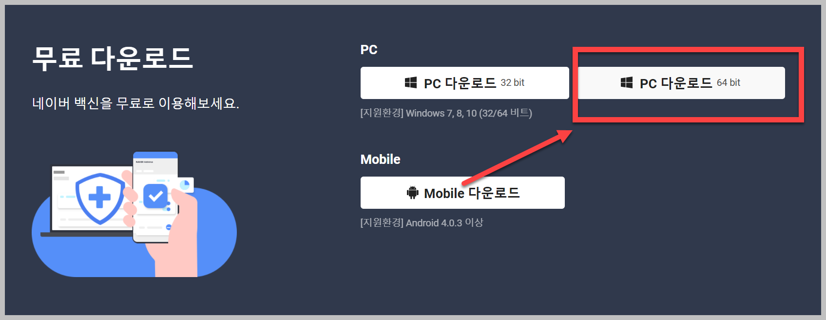 네이버 백신 바로가기 (https://antivirus.naver.com/)
