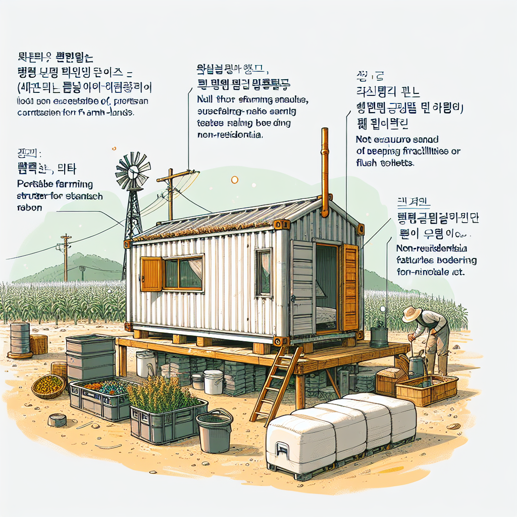 아울러, 농업 현장에서의 일시적인 휴식공간 제공 목적을 넘어서는 설치, 예를 들어 장기적인 거주 가능성을 열어 두는 등의 활용은 엄격한 규제 아래에서 이루어져야 합니다. 이는 농지의 본래 목적을 해치는 행위로, 농업 활동과 농지 이용의 적절한 균형을 유지하는 데 있어 중대한 고려 사항입니다. 또한, 일부 지역에서는 이러한 구조물에 대한 설치가 더욱 엄격하게 제한되고 있으며, 이는 지역적 특성과 환경 보호를 위한 필수적인 접근 방식으로 이해됩니다. 이와 같이, 농업 활동을 지원하는 소규모 구조물의 설치와 활용에 대해서는 보다 심도 있는 검토와 고민이 필요한 시점입니다.