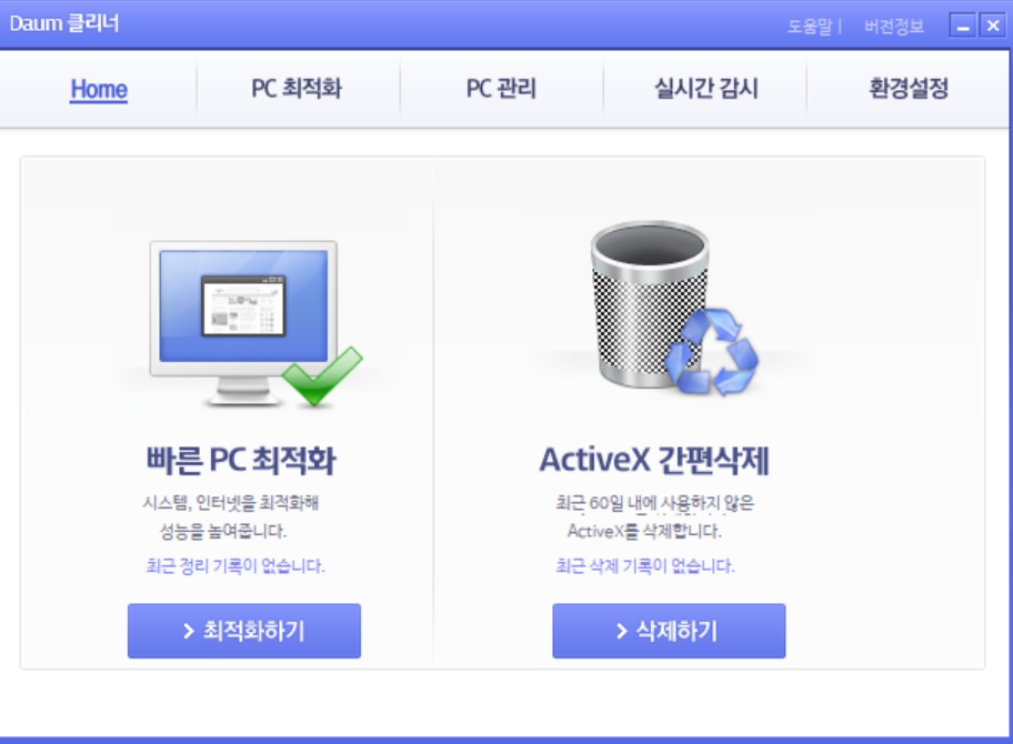 다만, 해외에서 온 백신 프로그램들 중에는 최적화 기능을 포함하지 않는 경우도 있으므로, 다음 클리너와 같은 별도의 최적화 소프트웨어를 함께 사용하는 것이 좋을 것입니다.