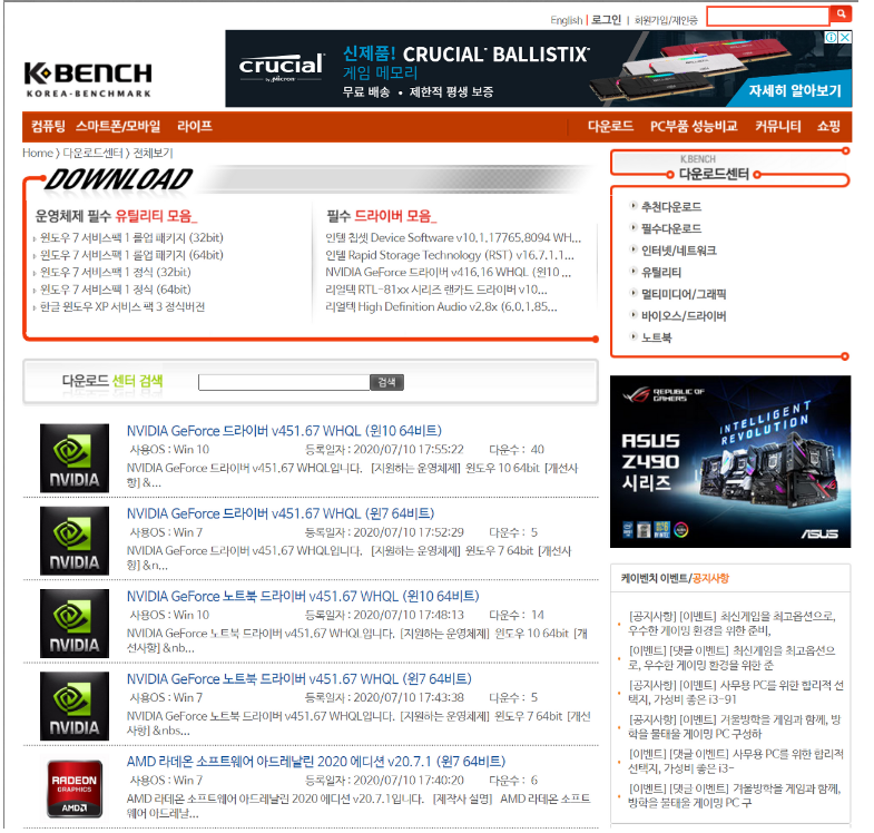 케이벤치도 여전히 많은 사람들이 이용하고 있습니다. 속도가 빨라서 어린 시절에 자주 이용했던 기억이 있습니다. 그러나 현재는 케이벤치보다 더 빠른 곳을 찾기 쉽습니다. 기술 발전으로 속도가 대체적으로 향상되었기 때문입니다. 그래도 케이벤치에서는 여전히 많은 드라이버들을 다운할 수 있습니다. 간혹 구버전의 프로그램이 필요하다면 이곳을 찾아보는 것도 좋을 것 같습니다.
