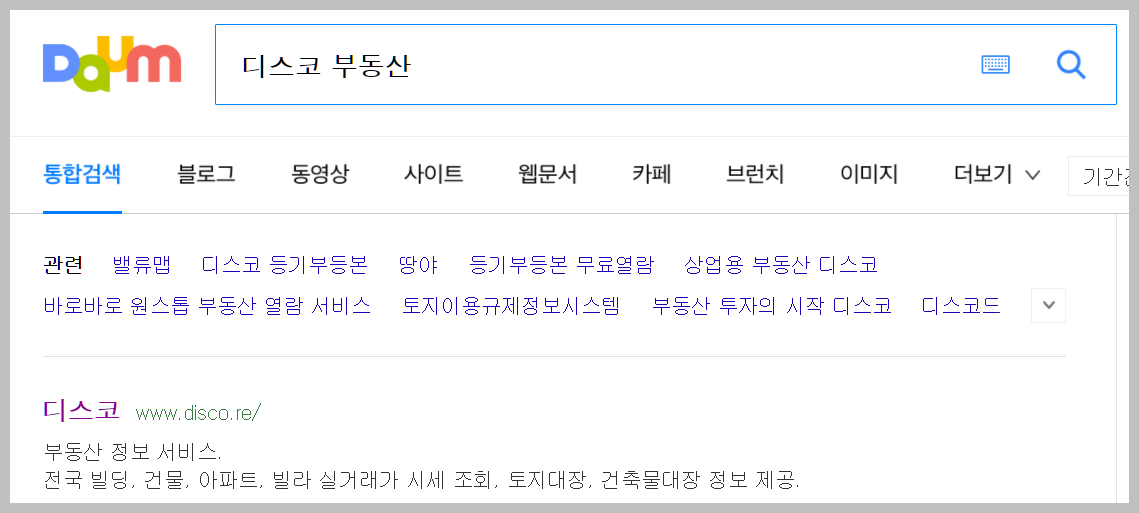 '디스코 부동산'을 포털 사이트 네이버나 다음에서 검색하시면, 디스코 웹사이트에 쉽게 접속하실 수 있습니다. '디스코'로만 검색하면 요구하는 검색 결과를 찾을 수 없을 것입니다.