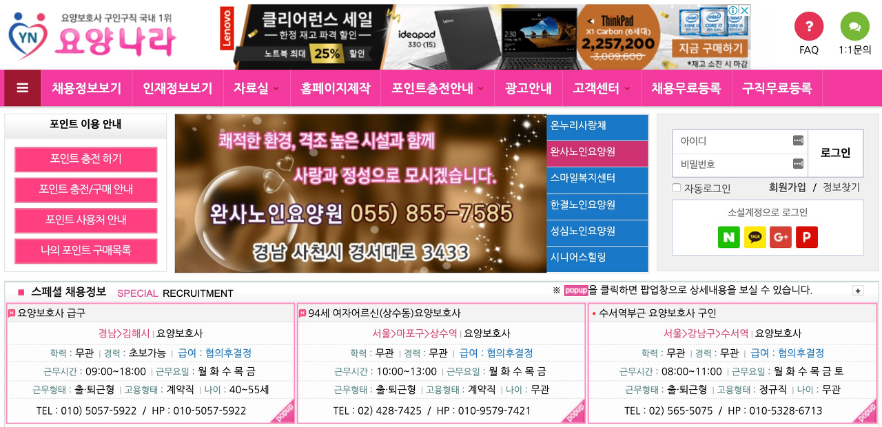 그런데 요양보호사 처럼 특수한 분야에서는 전문 구인구직 사이트를 이용해보는 것이 좋습니다. 전문 분야의 대표적인 예로 '요양나라 구인구직' 사이트가 있습니다.