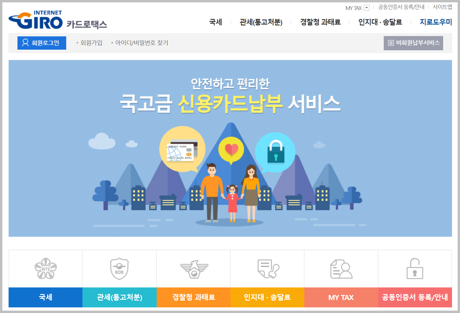 위 링크를 통해 카드로택스 홈페이지에 접속하신 뒤에 회원가입을 진행하면 되며, 인터넷지로 사이트에 이미 가입되어 있으신 분들은 별도로 회원가입을 하지 않아도 됩니다.