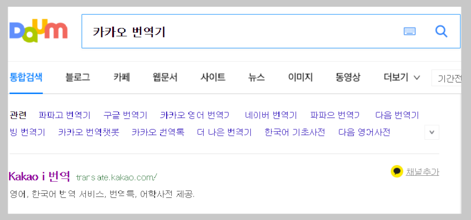 '카카오 번역기'를 검색하면 간단히 카카오 서비스로 이동할 수 있습니다.