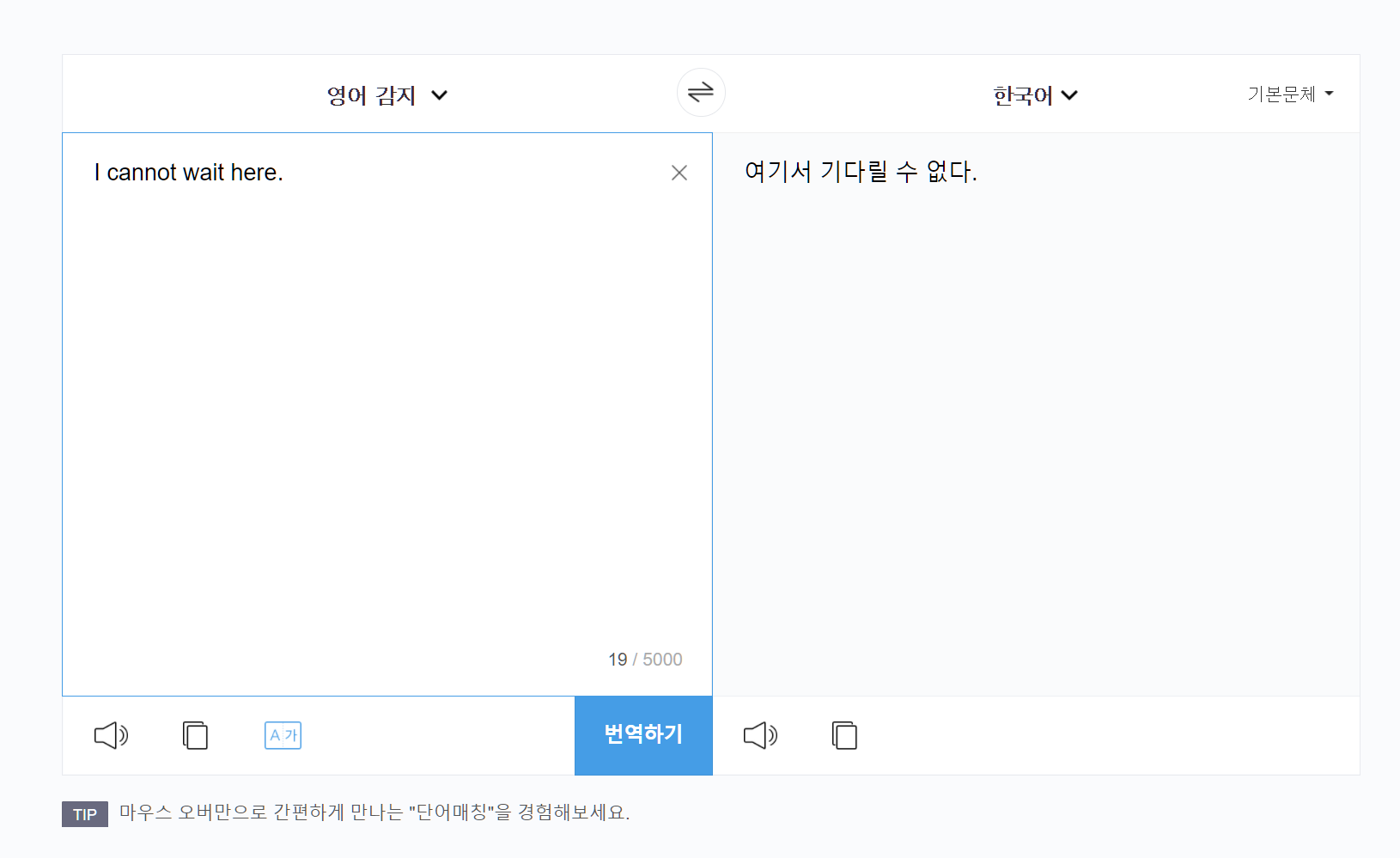 카카오 번역기를 사용해보는 것을 꼭 추천합니다. 이 서비스는 자연스러운 말을 제공하며, 때로는 네이버나 구글에서 제공하고 있는 서비스보다 더 나은 성능을 보여줍니다.