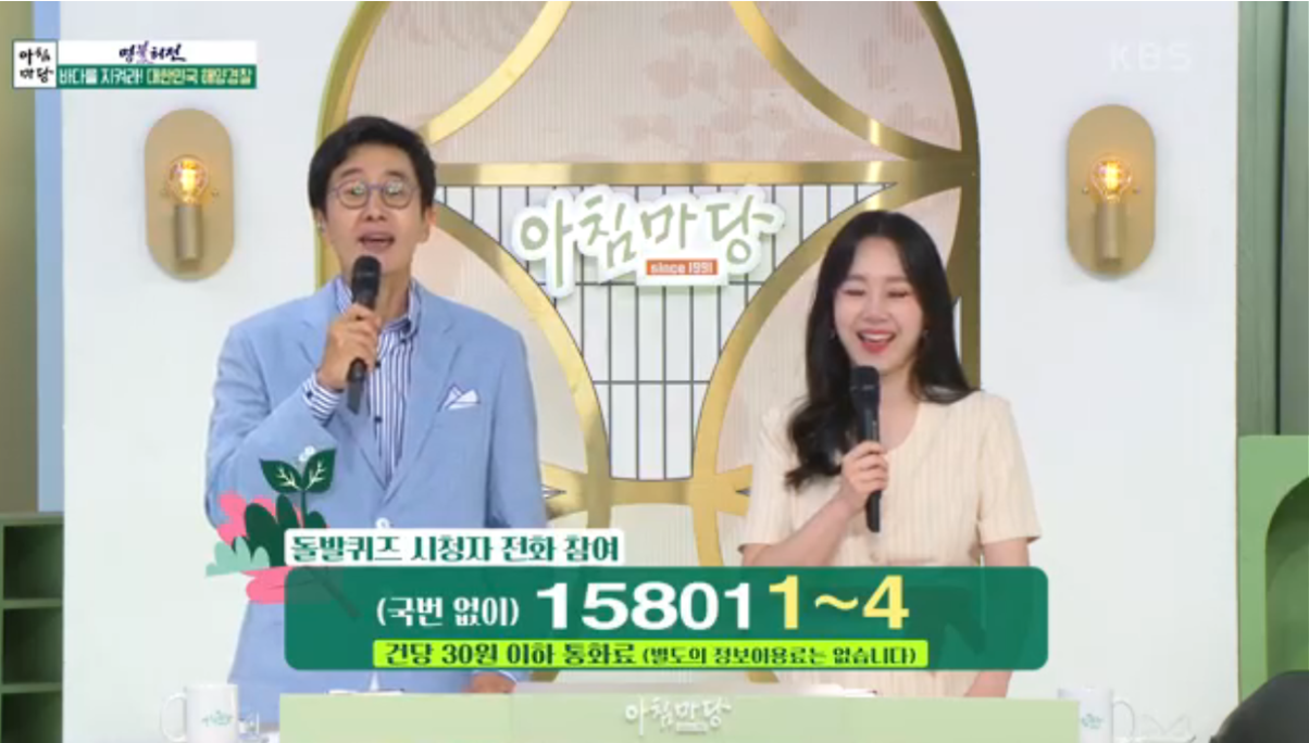 그런데 아침마당 퀴즈 전화번호를 통하여 참여를 하는 방법이 요즘 다시 시도가 되는것 같습니다. 티벗을 워낙 홍보를 많이 했더니 참여율이 줄었기 때문일까요? ARS를 통해서 참여하는 것도 많은 사람이 시도하는 방법 중 하나입니다. 티벗 아침마당 설치하기가 어려운 사람은 전화번호를 통해서 아침마당참여하기를 해보시는것이 어떨까 생각이 듭니다.