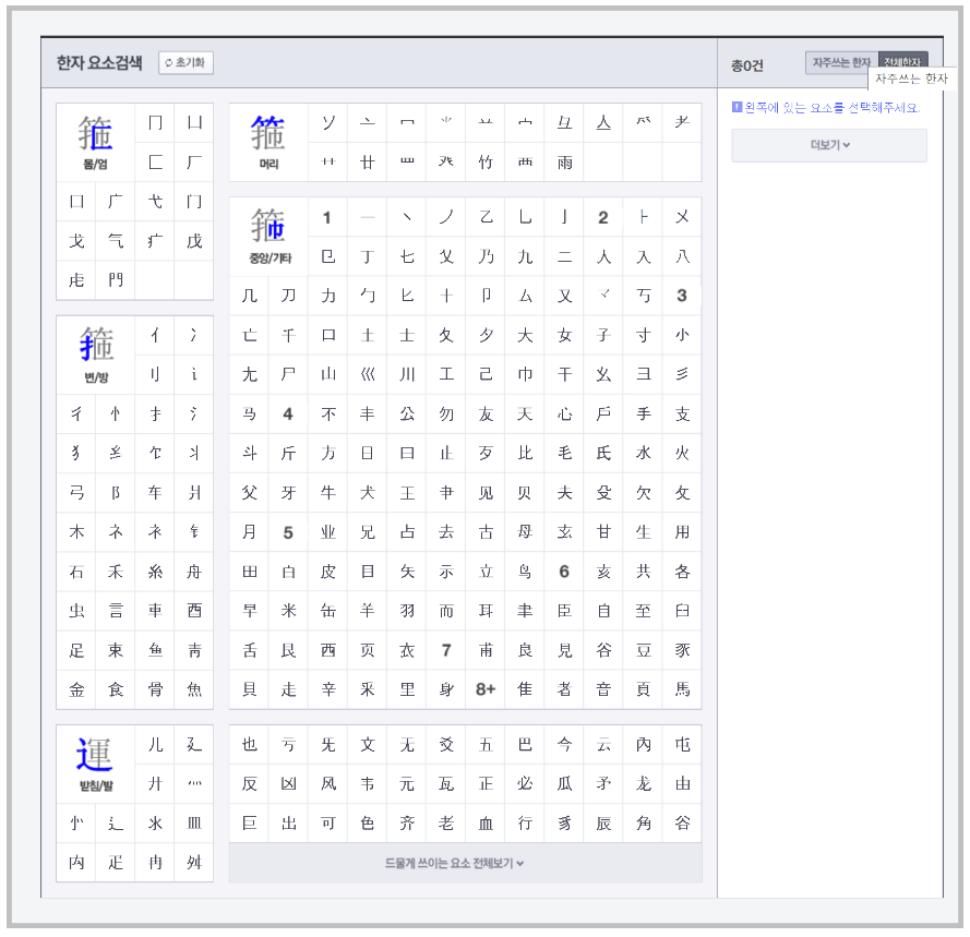 부수나 그 요소만 알고 있는 경우