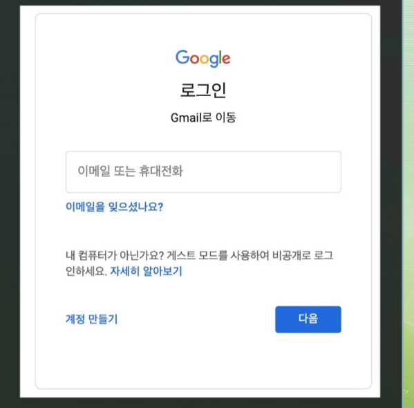 이렇게 로그인 버튼을 누르고 나면, 사용자는 ID와 비밀번호를 입력하여 G메일에 로그인 할 수 있습니다.